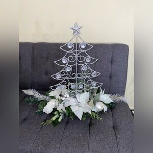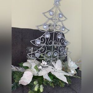 Enhance your holiday decor with this elegant silver tree decoration. Perfect for adding a festive touch to any room.