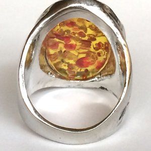 Silver Honey Amber Cocktail Ring Size 7 8 10 Yellow Orange Simulated Oval Cut