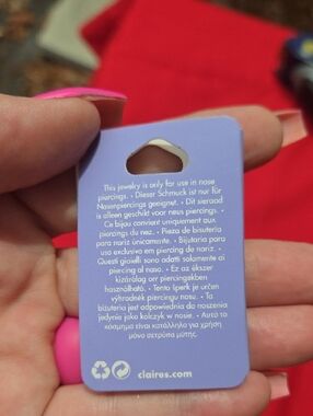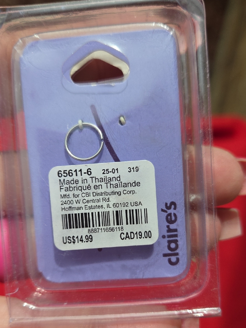 Small silver-tone hoop nose ring on branded Claire's card. Simple hoop design for everyday wear. Easy to slip in and secure.
