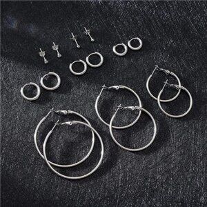 Silver Hoop & Stud Earring Set – 8 -Pair Classic Jewelry Collection Minimalist