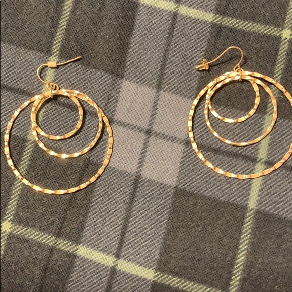 It is a pair of silver hoops that that have 3 different size circles that are connected. They have a ridge design. 🔥🔥5 for $30🔥🔥
