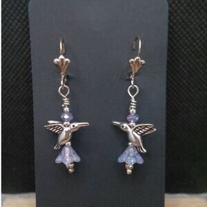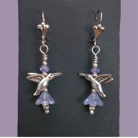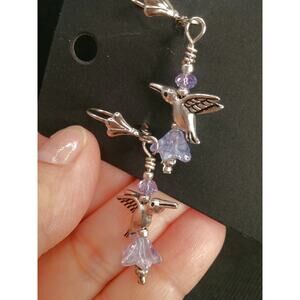 Silver Hummingbird Earrings Dangle Tibetan Whimsical Handmade Crystal Beads NEW