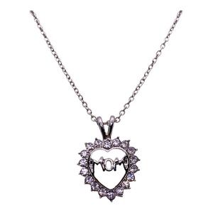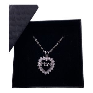 Silver Imitation Diamond Heart Mom Necklace Gift Box
