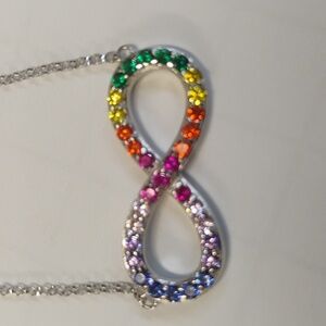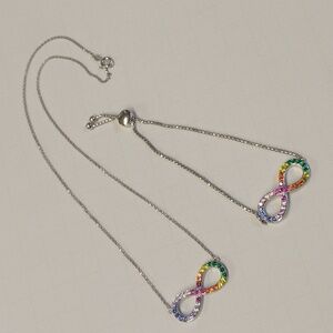 This listing is for a necklace and bracelet set. The box chain and bracelet are stamped 925 and the Infinity is crafted with rainbow zirconia. NIB