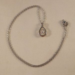 Beautiful women's elegant infinity zircon simple statement necklace silver plated with a sparkling round white clear diamond zircon gemstones. Top quality, high polish shine, brand new, never been worn. Lead, nickel free. This gorgeous pendant sparkles.