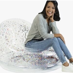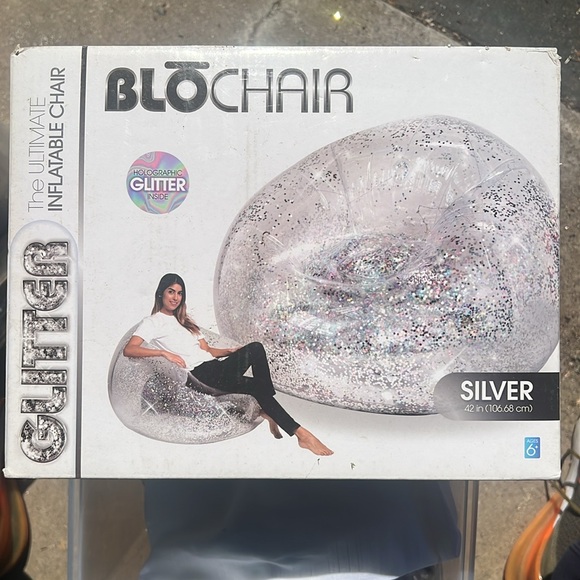 Experience ultimate comfort with the Silver Inflatable Chair. Featuring a stunning silver color with holographic glitter, this chair adds a touch of sparkle to any room. Perfect for lounging and relaxation.