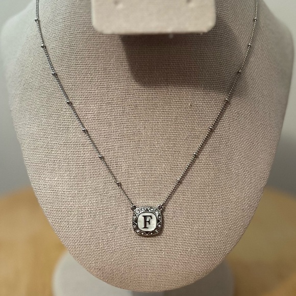 Silver Initial Letter Necklace Micro Pave White Enamel Letter Pendant Necklace Please see pictures Feel free to ask questions