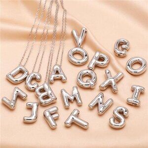 Silver Initial Pendant Necklace – Personalized Letter “H” Trendy Stuffed Bubble