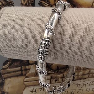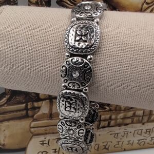 Silver Intricate Medallion and Filigree Stretch Bracelet Set