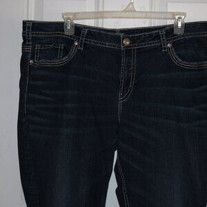 Silver Jean Co SUKI Fluid Capri Size 24. Waist measures 23 1/2 side to side and 25 1/2 inseam. The label on the waist has faded and peeled (see photo)