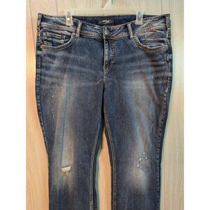 Silver Jean Co. SUKI Mid Rise Slim Boot Denimotion Dark Wash Size 18 Distressed
