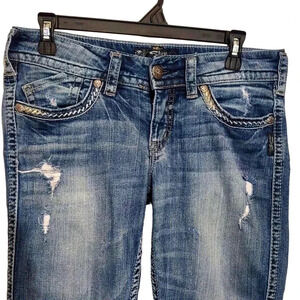Silver Jean Co. Tuesday Blue Denim Distressed Size 29 31" length could be capri
