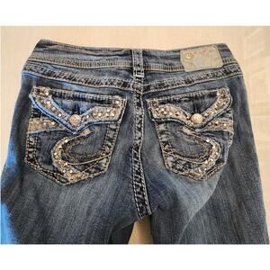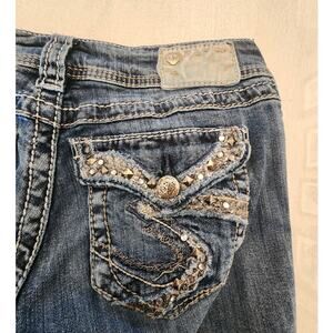 Silver Jean Co Women's Denim Bootcut Jean. Size 27. Studs. Rhinestones. Medium Wash. In good preowned condition. Smoke Free Home.