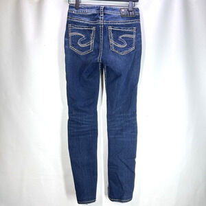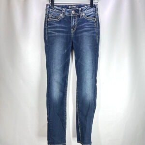 Silver Jean Women sz W25 L32 SUKI Mid straigt Stretch Comfort Thick Stitch Denim