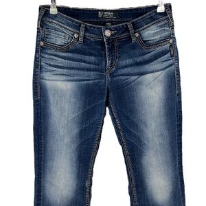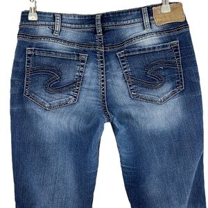 Silver jeans my preference of any jeans that is sold. These are the cutest jeans tempted to keep them but I buy them to sell. Awesome fading on the front and back boot cut stretchy very nice jeans. Preowned measurements are in the pictures. In great condition.