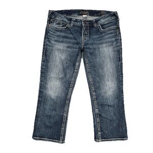 Silver Jeans Aiko Capri 32 (33x21.5) Blue Low Rise Distress Denim Womens