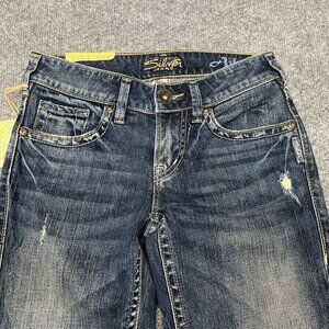 Silver Jeans Aiko Flare Womens 24X33 Blue Denim Distressed Stretch Curvy New