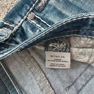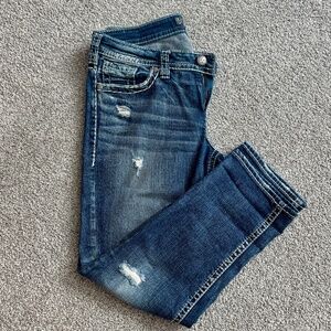 Silver Cropped Jeans, Aiko Mid Straight, W29/L25, Distressed, Light Wash, EUC