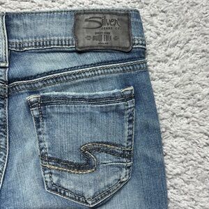 These Silver Jeans capris in a vibrant blue color offer a stylish distressed look, ideal for everyday wear. With a comfortable fit and unique wash, they add a touch of flair to any outfit. Enjoy the classic appeal and texture of these versatile pants.