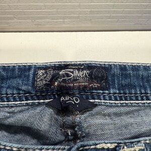 Experience the perfect blend of style and comfort with Silver Jeans' blue flare and wide leg denim. These jeans feature a classic flared silhouette that widens from the knee down, offering a chic and timeless look. The medium-light wash with natural fading and distressing adds a vintage touch, making them a versatile addition to any wardrobe.