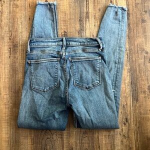 These Silver Jeans feature a sleek skinny fit in a classic blue hue, perfect for a modern casual look. The distressed detailing on the knees adds a trendy edge, while the soft denim ensures comfort throughout the day.