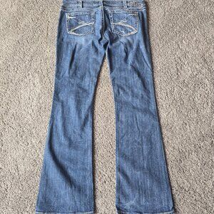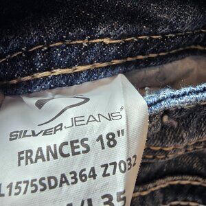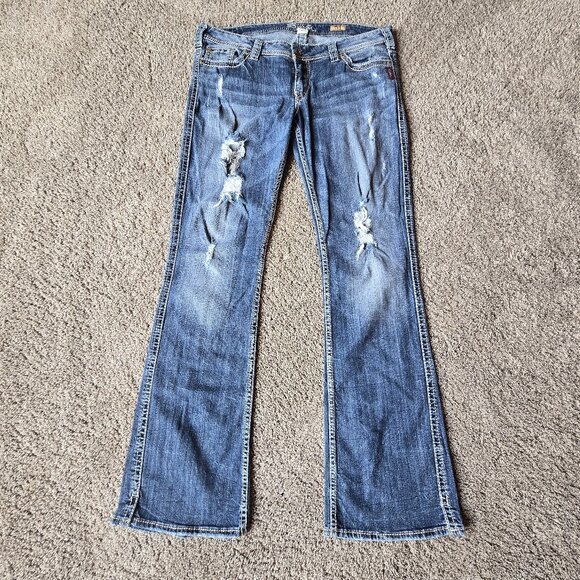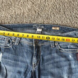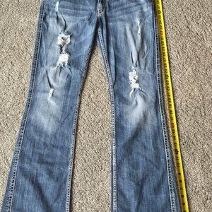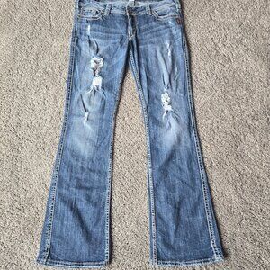 Bootcut Frances Silver Jeans distressed W34/33L. A few wear marks on the bottom hem.