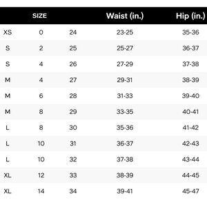 Size S = waist sizes 24-27, Size M = waist sizes 28-31, Size L = waist sizes 32-35, Size XL = waist sizes 36-39 or dress sizes 16-18