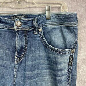 Silver Jeans Casy Boyfriend Womens W32 L31 Blue Thick Stick Embroidered READ