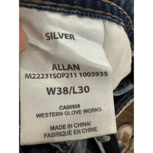 Silver Jeans Co Allan Relaxed Fit Straight Leg Jeans 38x30 Blue Denim Cotton Ela