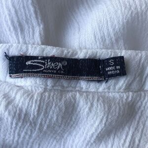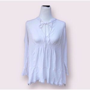 Silver Jeans Co White Oversized Bell Sleeve Split Neck Raw Hem Bohemian Peasant Top Women’s Size Small