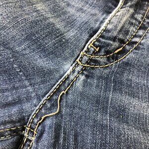 Preowned in gently used condition. No rips, holes, or stains. Area below fly has loose stitches. See last photo. Distressing along pockets and cuffs. Item is from a nonsmoking home.