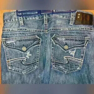 Silver Jeans Co Men's jeans size 36waist, length hemmed, distressed, dark wash