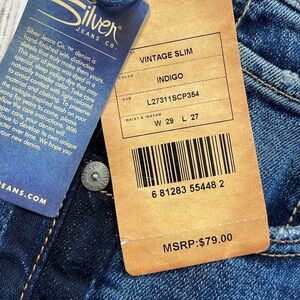 Silver Jeans Co. NWT Indigo Two-Tone Vintage Slim Jeans Size 29