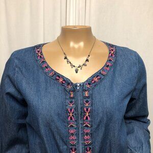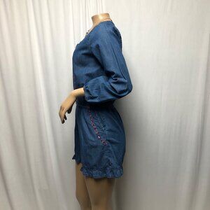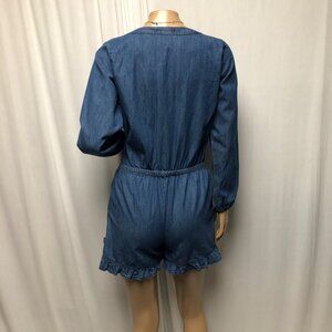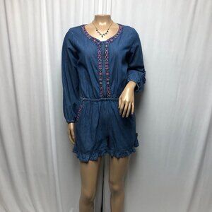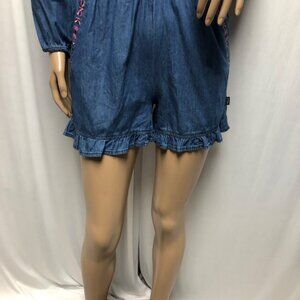 Silver Jeans Co Romper Youth XL 14-16 Blue Denim Embroidered Zippered Shorts