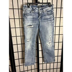 Silver Jeans Co Suki Mid Capri Distressed Light Wash Blue Jeans