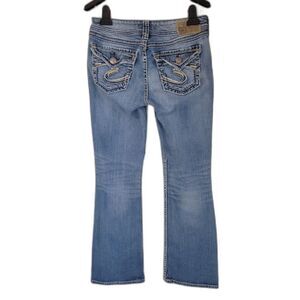 Silver Jeans Co Suki Surplus Bootcut Jeans. Size 26 x 32. Step into vintage-inspired style with the Silver Jeans Co Suki Surplus Bootcut Jeans. These classic bootcut jeans feature a flattering fit, authentic distressing, and a timeless surplus wash. Perfect for adding a touch of retro cool to your wardrobe, whether you're dressing up or down.