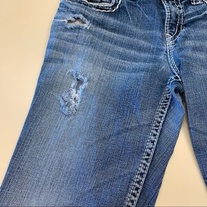 Silver Jeans Co - Women’s Aiko Western Glove Works Distressed Embroidered Low Rise Jeans Denim Cowboy Cowgirl Rodeo