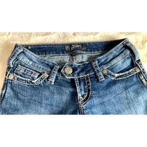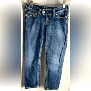 Silver Jeans Co Women's SZ 26 Tuesday Low Cut Capri Metal Button Detail