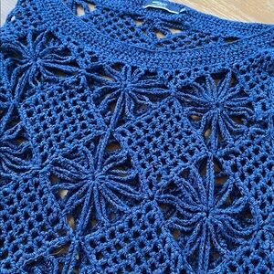 Dark blue crochet top with intricate design. Ideal for layering. No smoke home.