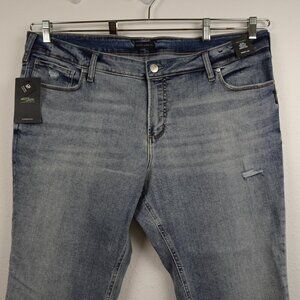 Silver Jeans Elyse Skinny Leg Women's Plus Size 22 Blue Denim Stretch Distressed