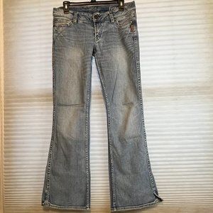 Silver Jeans Francis LOW RISE/FLARE LIGHT WASH SLIGHTLY DISTRESSED 29/33 NWOT