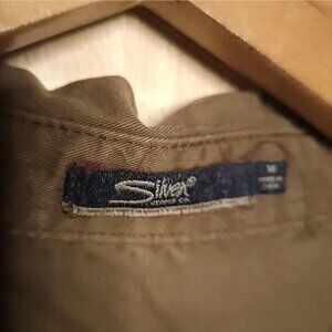 Silver Jeans women’s olive green long sleeve lyocell shirt dress medium. Gently used condition. Measurements are: 25” sleeve, 34” from shoulder to hem and 21” from armpit to armpit.