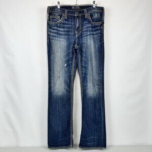 Silver Jeans Mens 34x34 Blue Grayson Relaxed Straight Distressed Stretch Denim