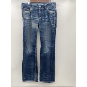Silver Jeans Pants Womens 29 X33 Blue Denim Suki Bootcut Embellished Distressed