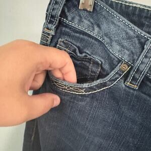 Silver Jeans Santorini Capri Jeans in Women's Size 30 Waist. Color is a Darker Medium Wash. Jeans are in very good used condition with no flaws or stains other than some minor wash wear. Please see close-up pictures for condition details. Cropped, crop, capris.
