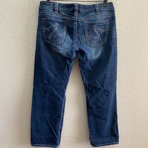 Women's Silver Jeans Santorini Crop Capri Dark Wash Intricate Stitching Distressed