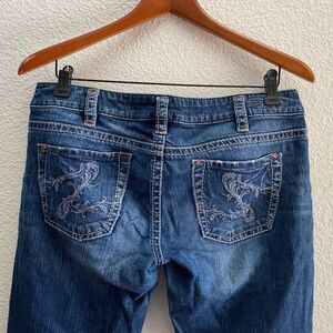Silver Jeans Santorini Crop Capri Dark Wash Intricate Stitching Distressed 30