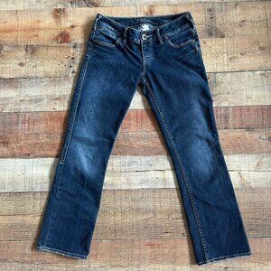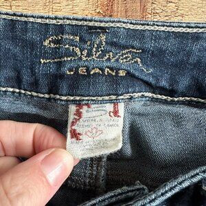 Silver Jeans Santorini Cropped Low Rise Denim Jeans in Dark Wash Blue -27