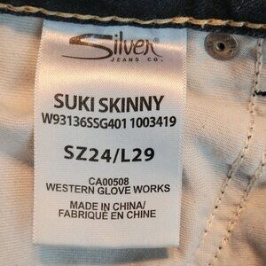 Silver Jeans Size 24 Suki Skinny High Rise Ripped Dark Wash Stretch Denim