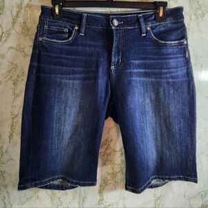 Size W31/L9. 34-38 inch waist, 10.5 inch rise, 10 inch inseam. Cotton/polyester/elastane. Good previously worn condition.